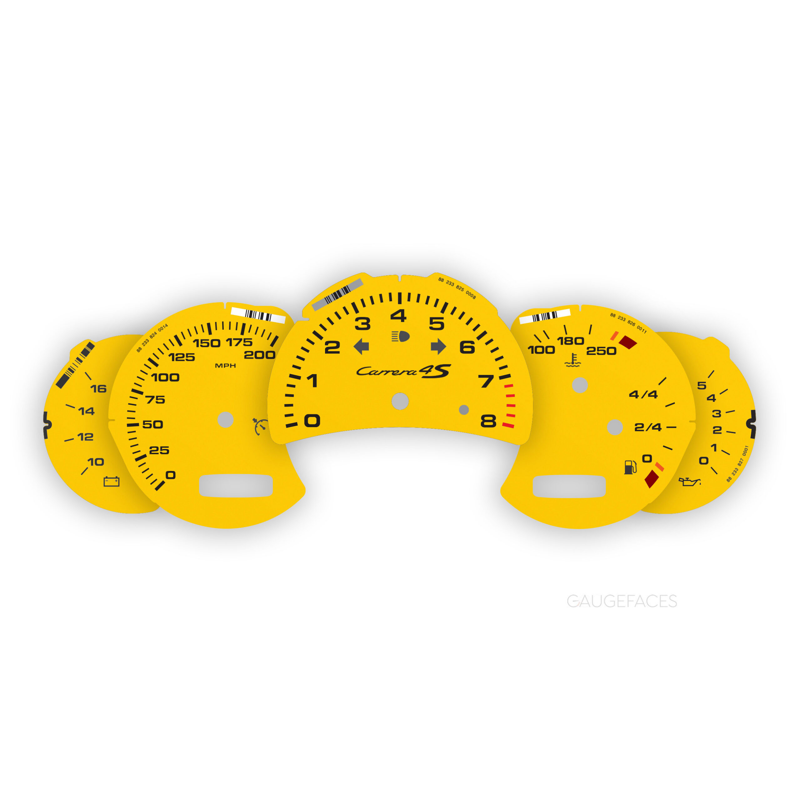 Сustom Order: Porsche 911 996.2: Gauge Faces Set – Speed Yellow with Black numbers – Manual – C4S Logo