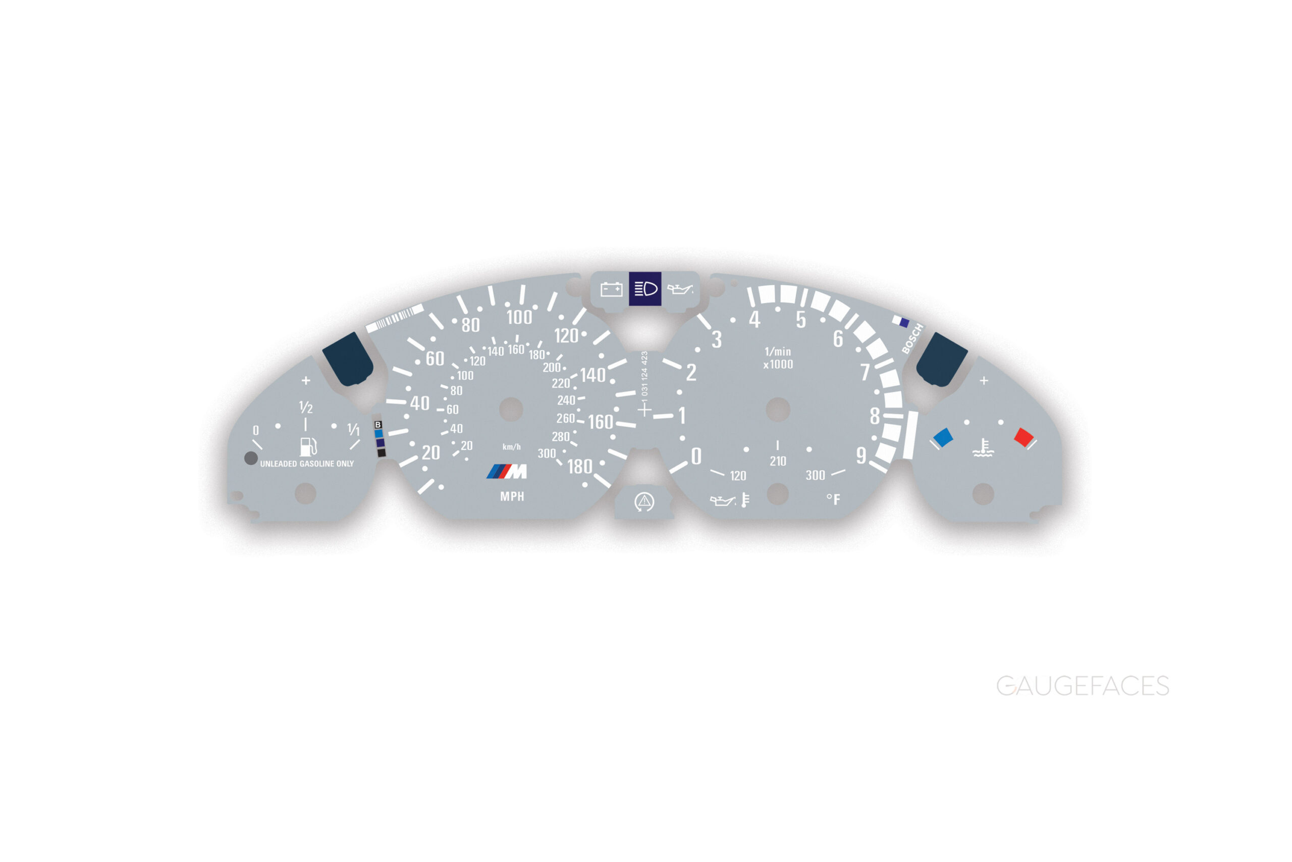 BMW E46 3-series M-Style Instrument Dials – 180MPH/300 KMH – 9000 RPM – Light Gray.