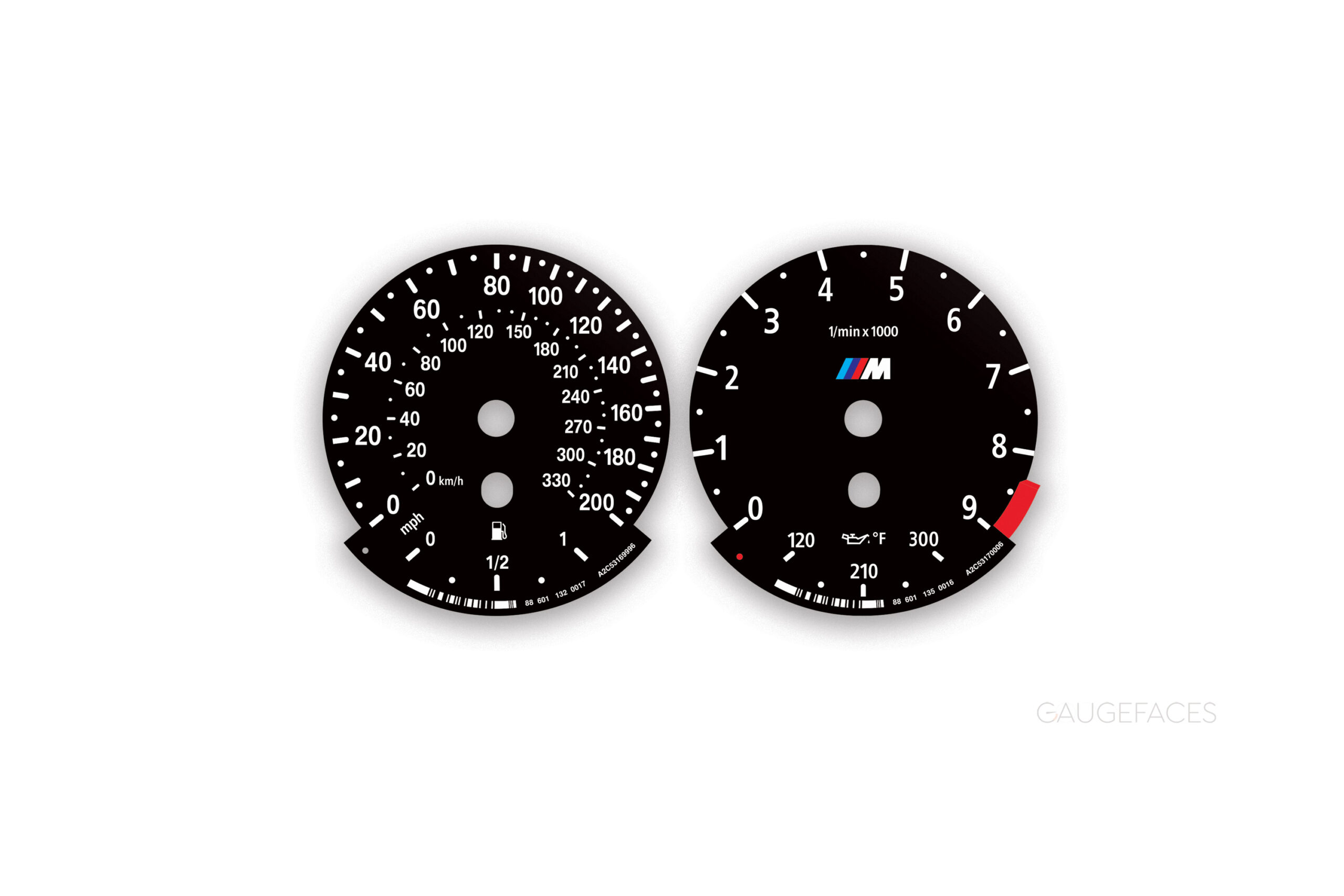 BMW E90 E92 E93 Instrument Dials – M-Logo – 200MPH/330 KMH – 9000 RPM – Black.
