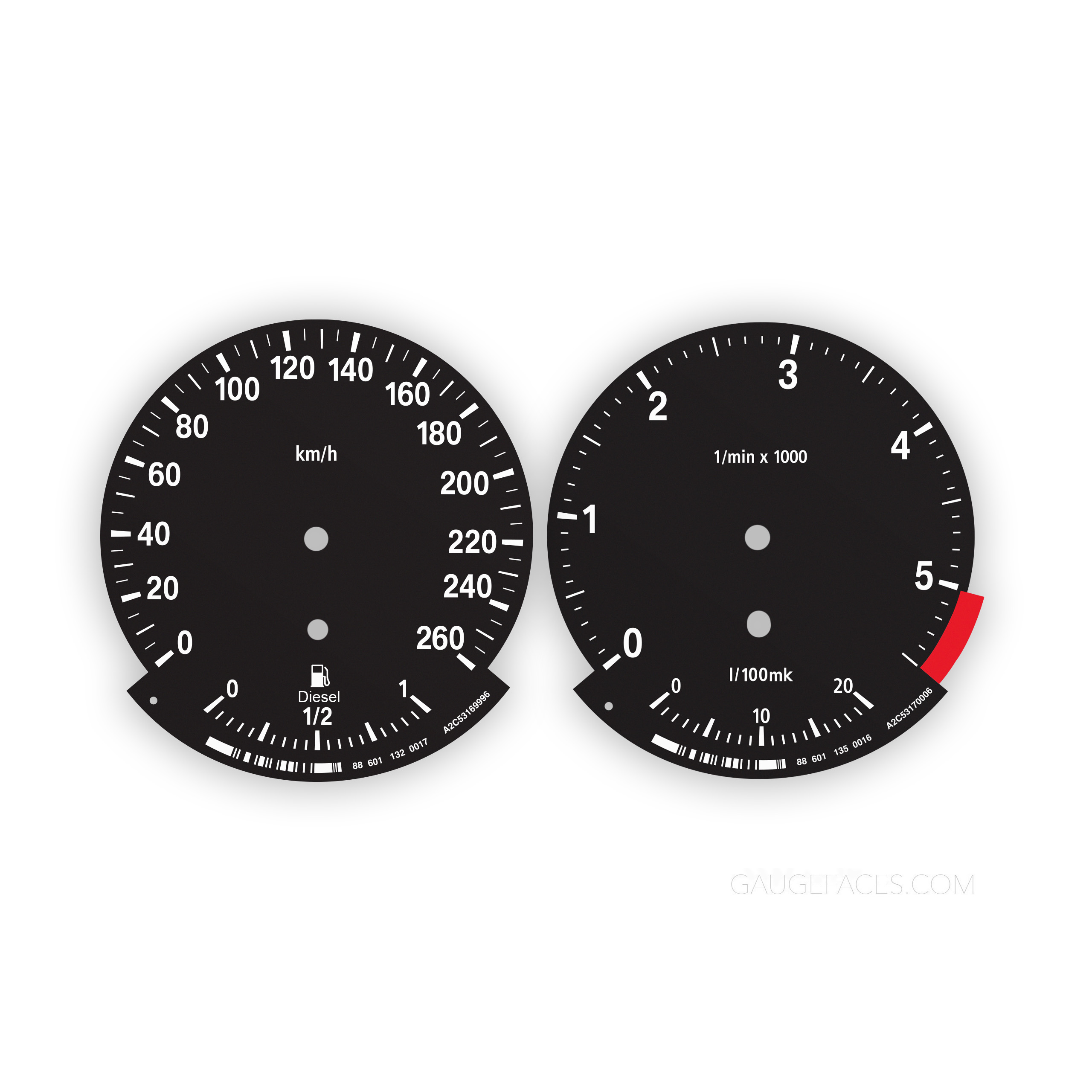 BMW Instrument Gauge Faces Replacement Dials – Diesel 260 Km/h, Speedometer + 5500 RPM Tachometer – Black .