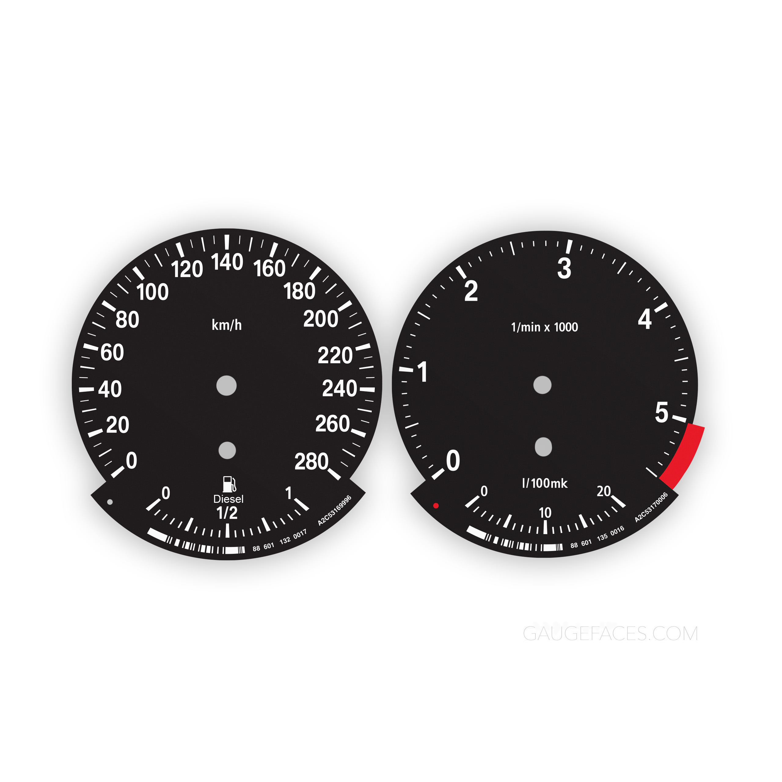 BMW Instrument Gauge Faces Replacement Dials – Diesel 280 Km/h, Speedometer + 5500 RPM Tachometer – Black .