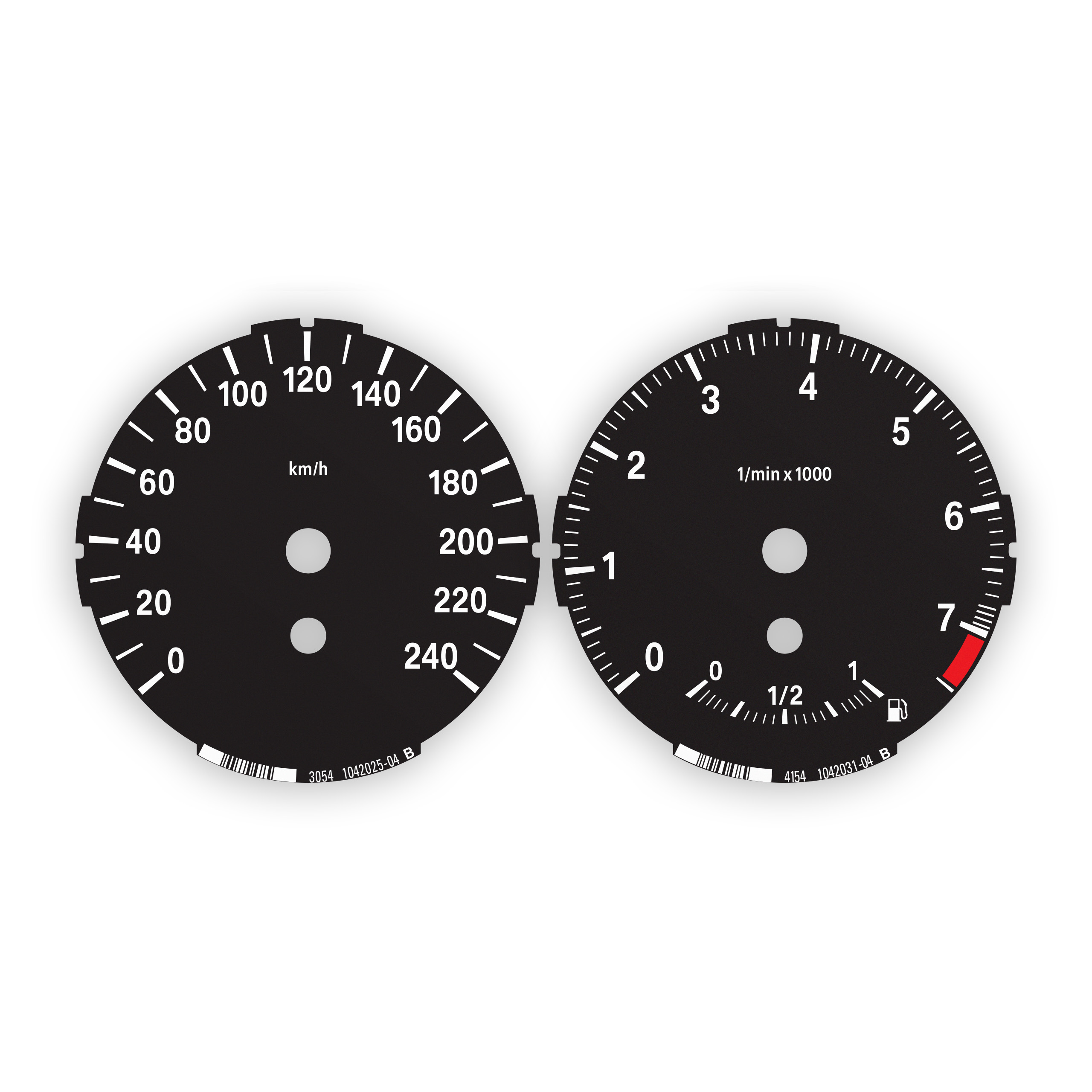 BMW Instrument Gauge Faces Replacement Dials – Diesel, Low, 240 Km/h, Speedometer + 5500 RPM Tachometer – Black .