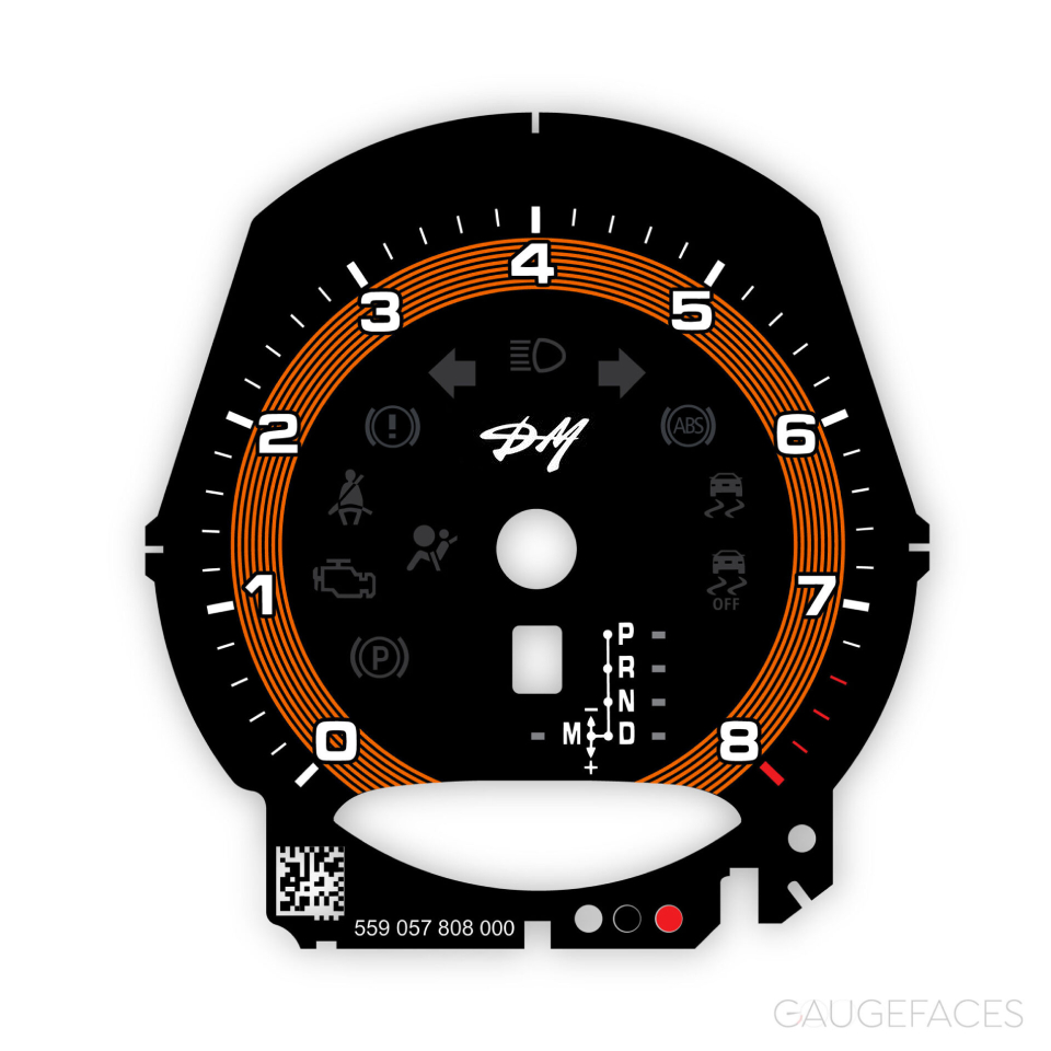 Custom Order: Porsche Carrera (1984) Gauge Face Tachometer – Custom Logo – Aurum Gold