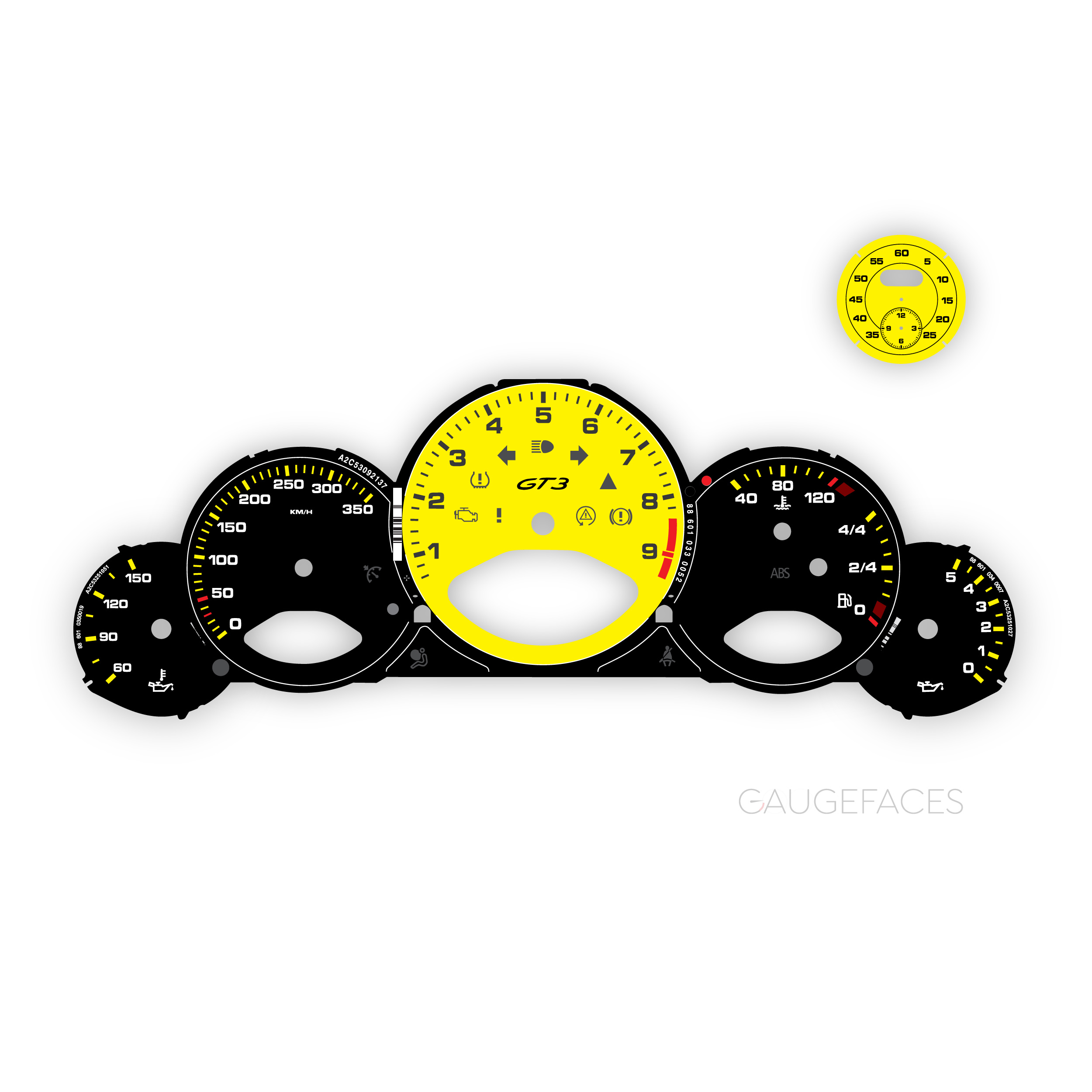 Custom Order: Porsche 996.2 Gauge Faces Set – US-Spec – Manual – White with Semi-Ring