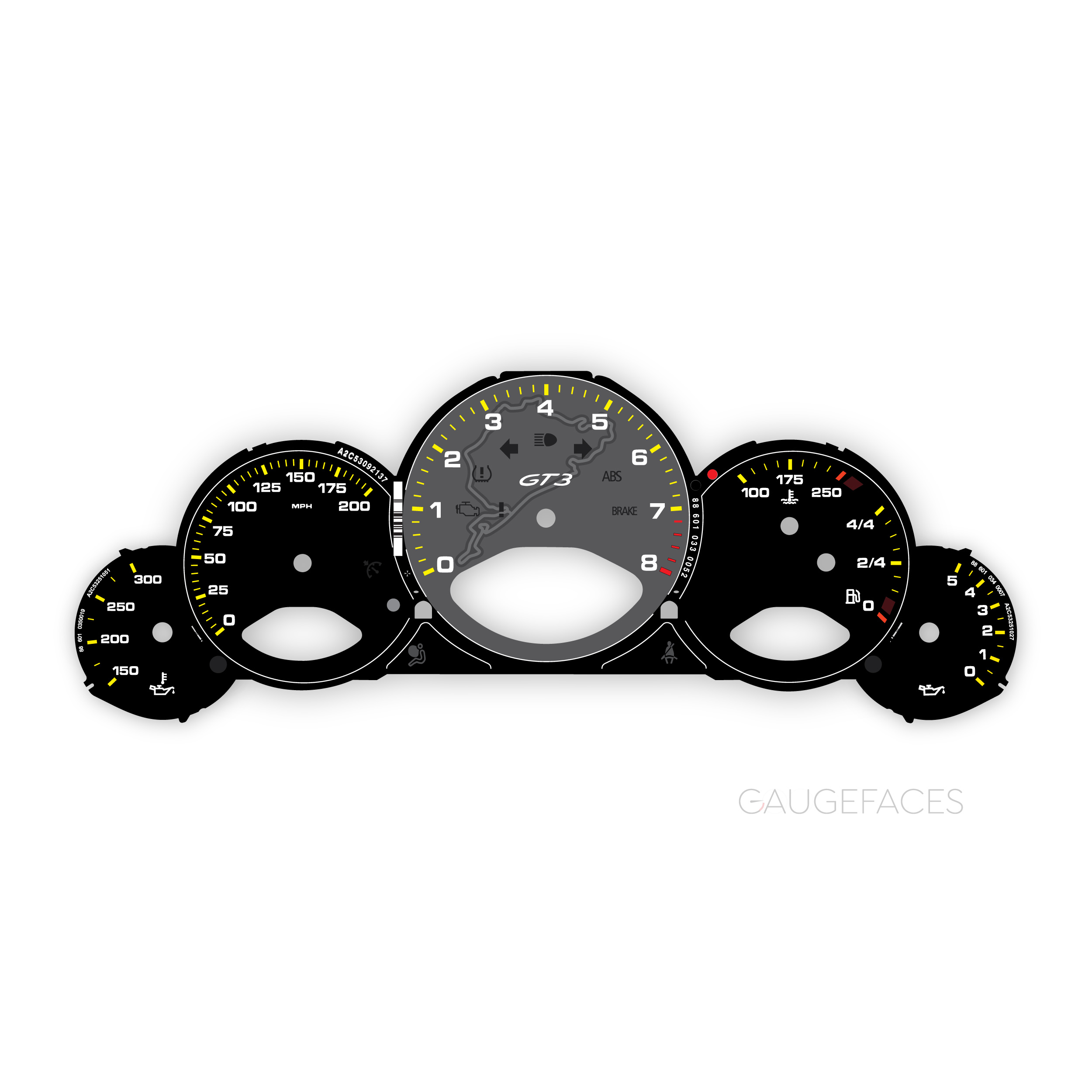 Custom Bundle: Porsche 718 GT4 Gauge Faces Set – Black with Racing Yellow Fine-Line Accent Ring