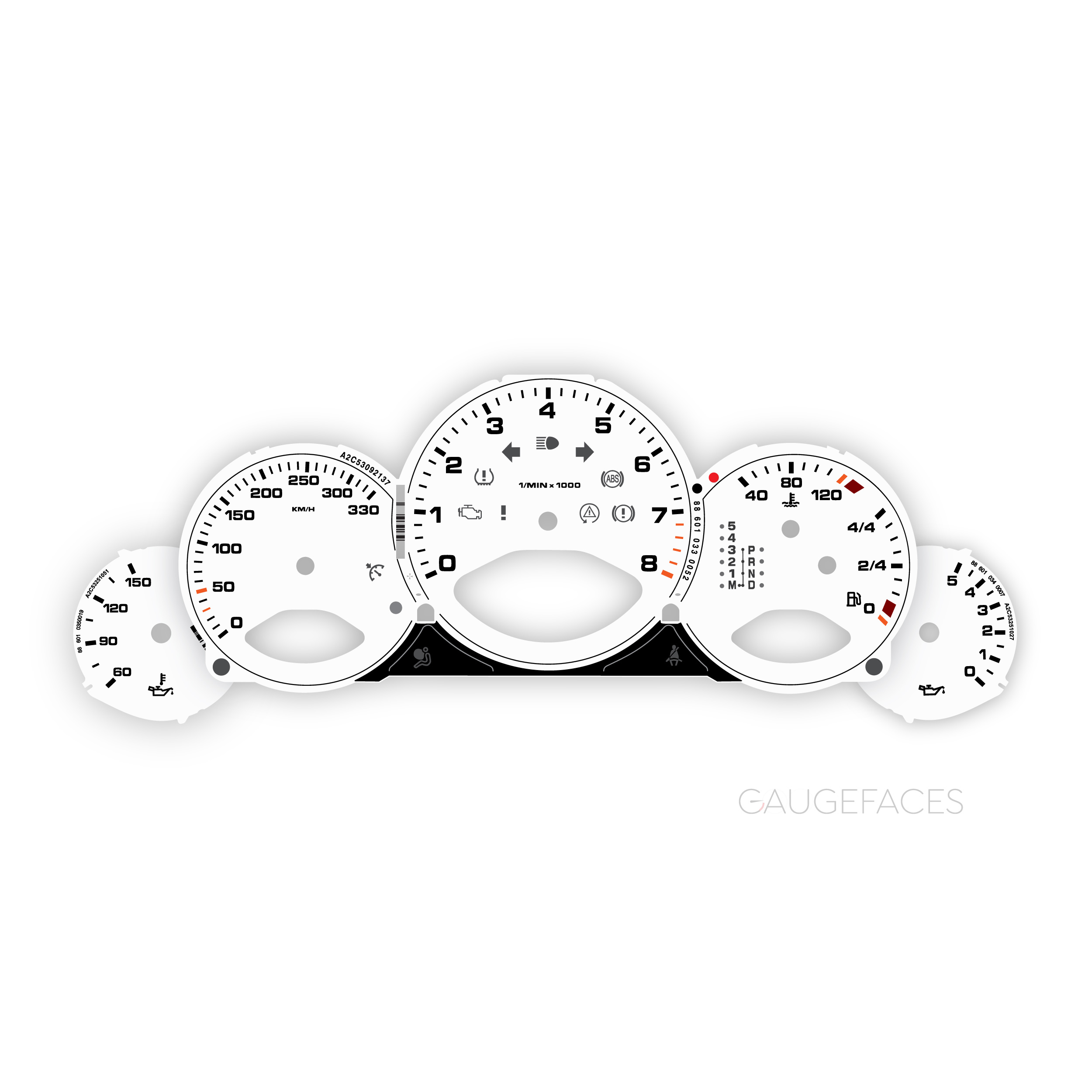 Custom Order: Porsche 991.1 Gauge Face Tachometer – Manual – Nurburgring Edition – White