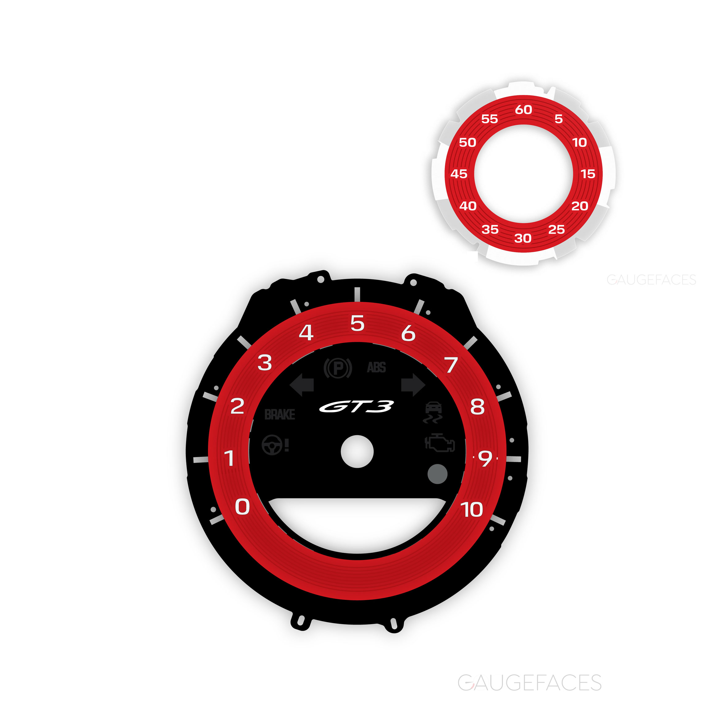 For Porsche 911 (992) GT3: Gauge Face Tachometer – Black with Guards Red Solid Accent Ring + Sport Chrono Guards Red