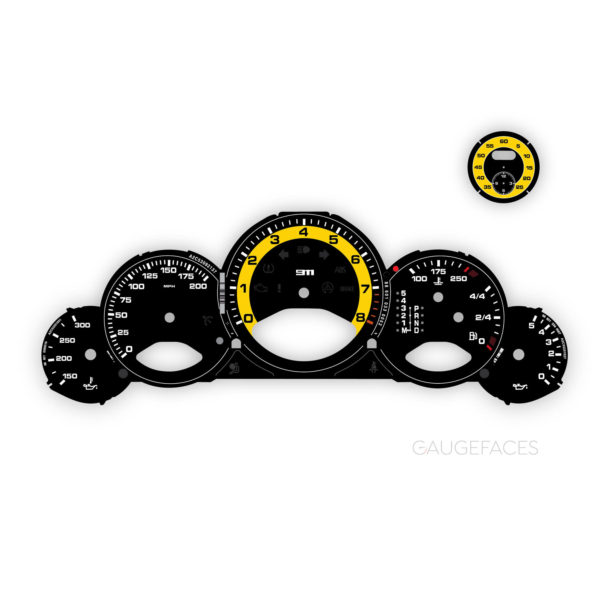 For Porsche 911 997 (Gen 1&2): Gauge Faces Set – Black with Yellow Solid Accent Ring + Sport Chrono