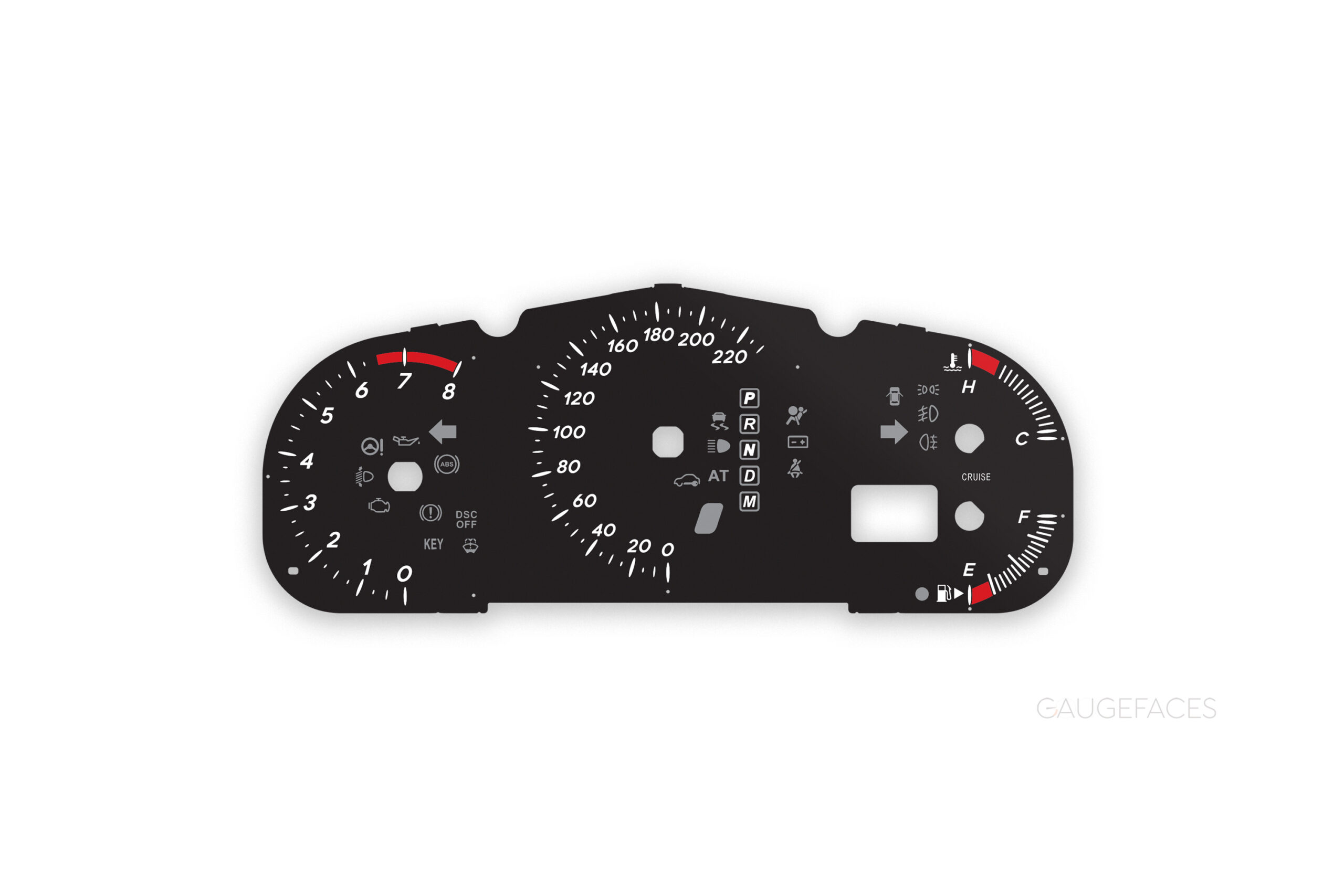 Printed directly on high quality dense plastic with UV printing technology for deep and rich colors. Laser engraving preserves details sharp and crisp. Anti-glint finish makes the surface matt and smooth. The gauge face is pre-cut with precision laser and ready to be installed. All warning lights and icons are the same as original and match OEM placement.