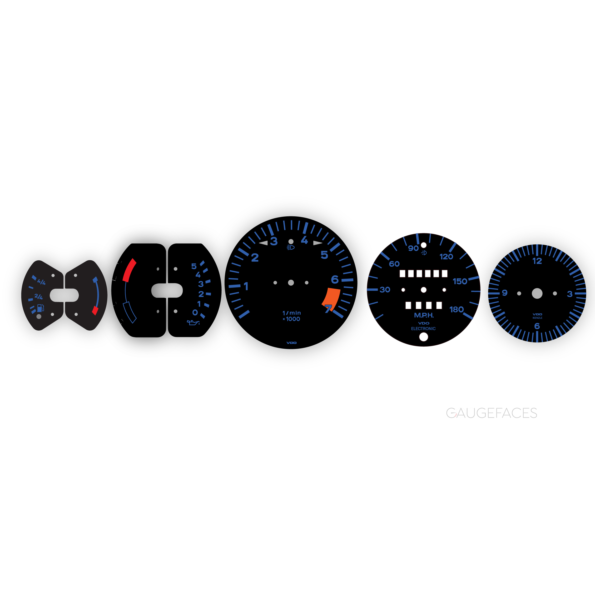 Custom order: Porsche 911 930 Gauge Faces Set – 180 mph – Black with Blue Lettering