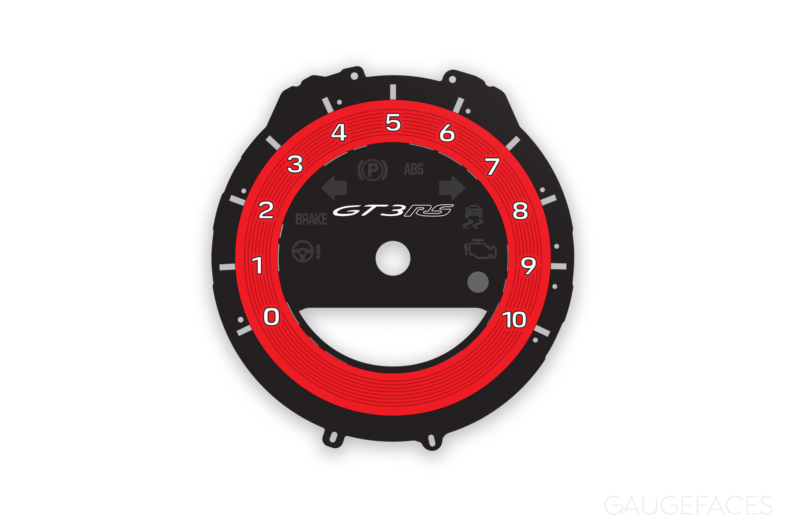 Porsche 911 992 GT3RS gauge face tachometer in red. 10000 RPM.