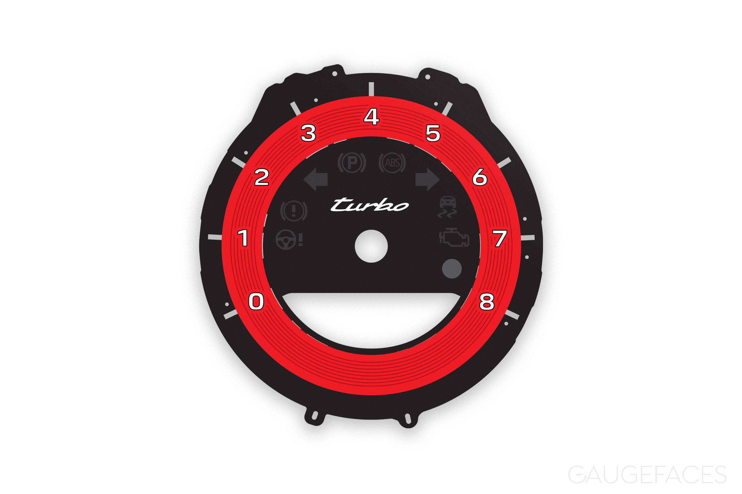 Porsche 911 992 Turbo gauge face tachometer in guards red. 8000 RPM.