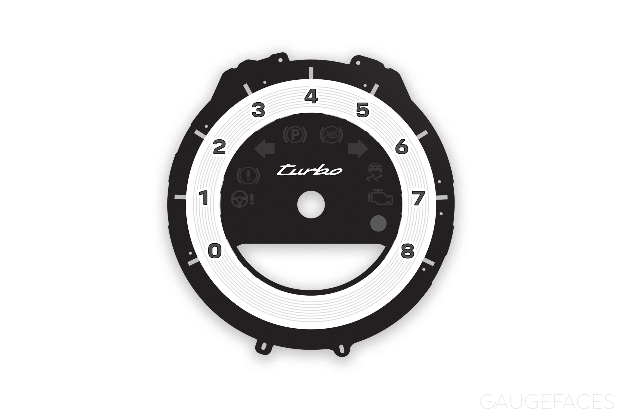 Porsche 911 992 Turbo gauge face tachometer in white. 8000 RPM.