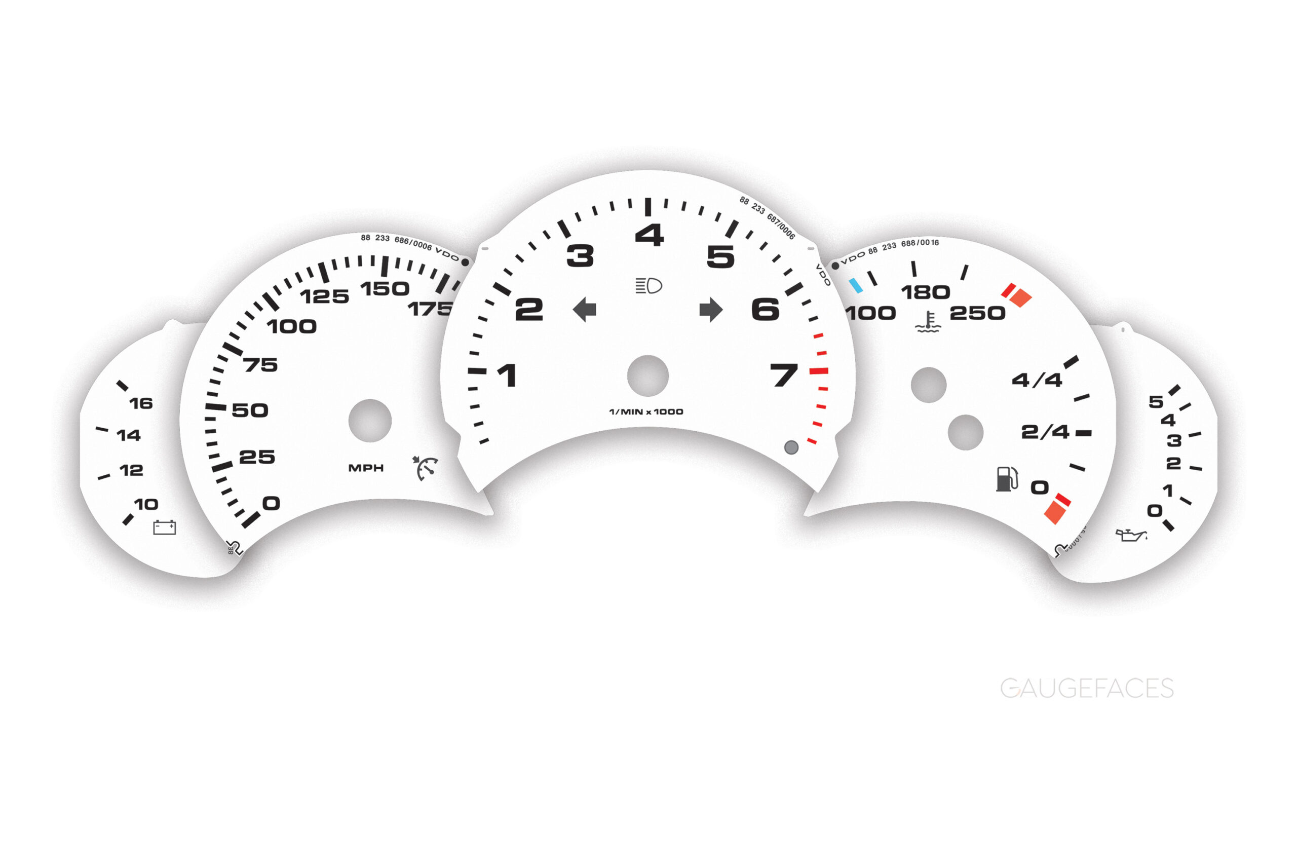 Porsche 911 996.1 gauge faces set in white. 8000 RPM, Tiptronic/Manual.