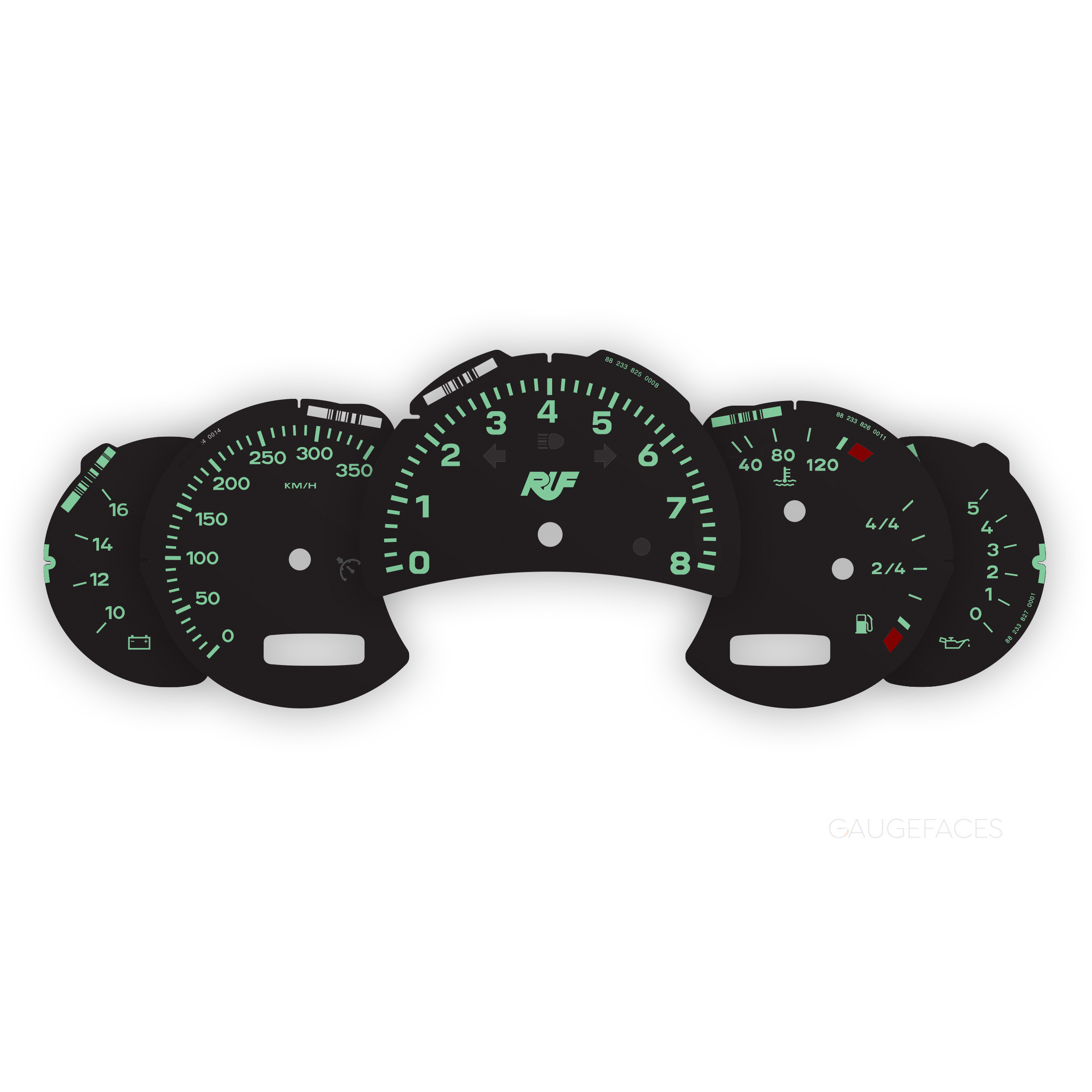 Porsche 911 996 Rturbo instrument cluster gauge faces set – EU-spec (350 km/h).