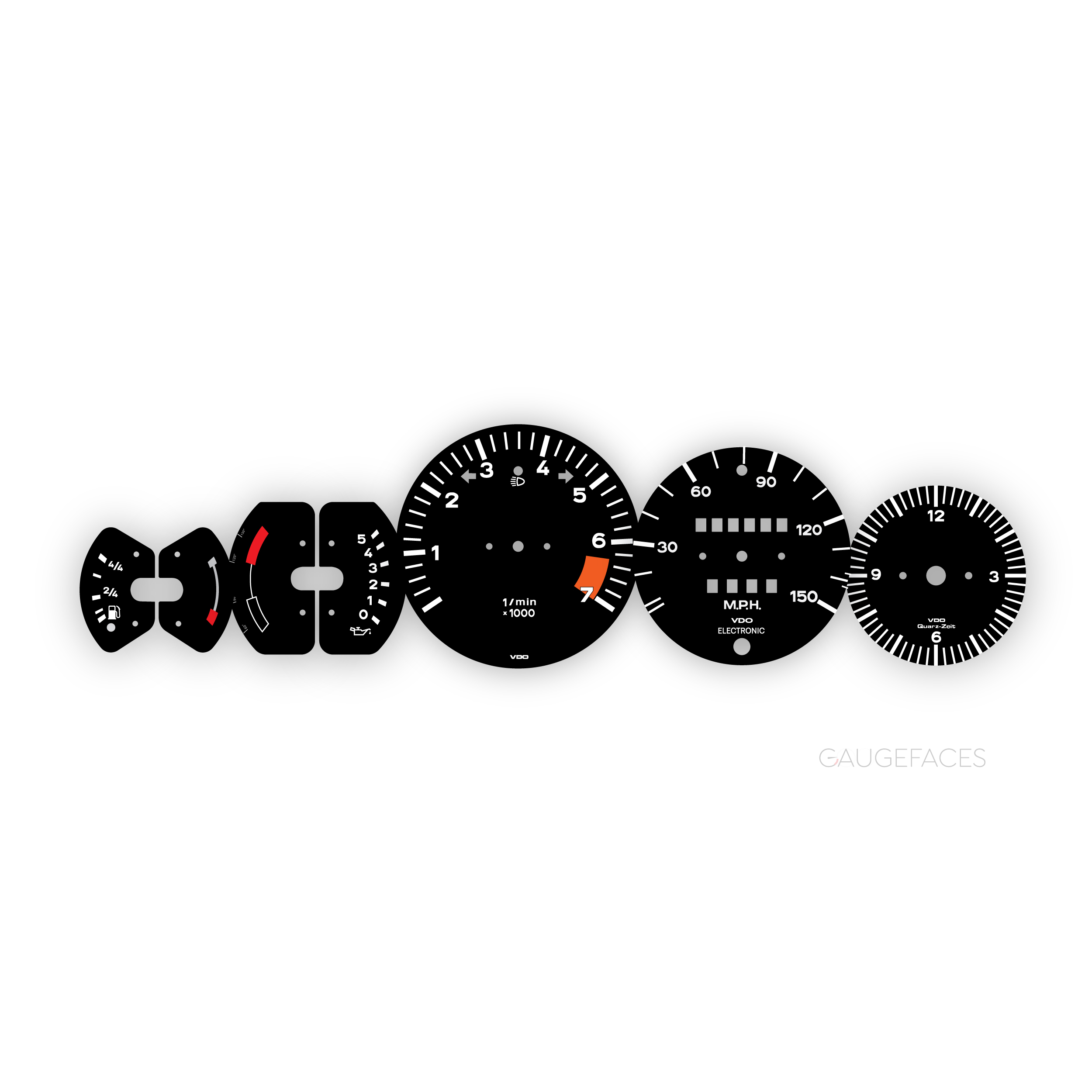 Porsche 1978-83 SC (Super Carrera) gauge faces – 150 MPH – Black.