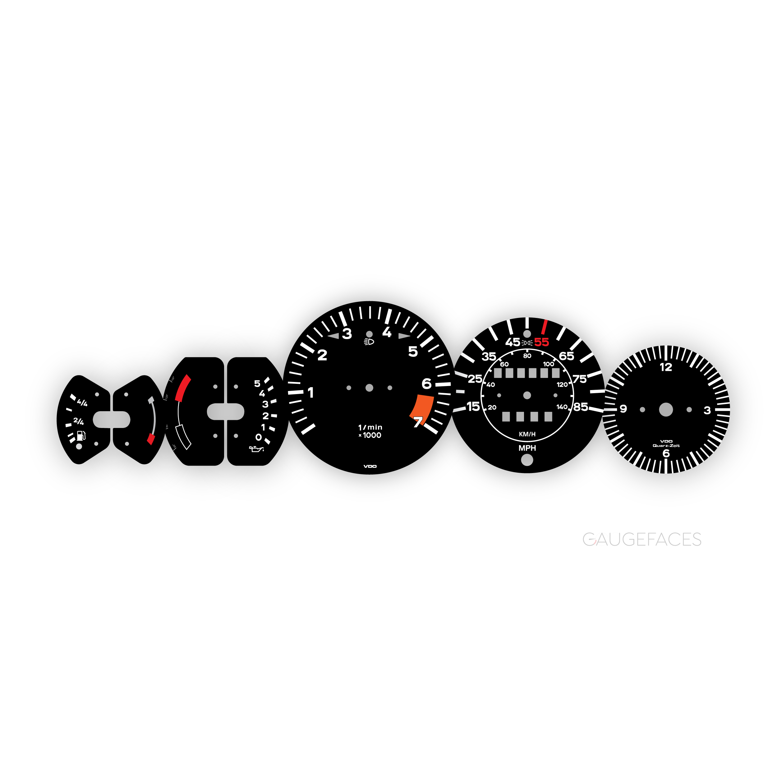 Porsche 1978-83 SC (Super Carrera) gauge faces – 85 MPH / 140 KMH – Black.