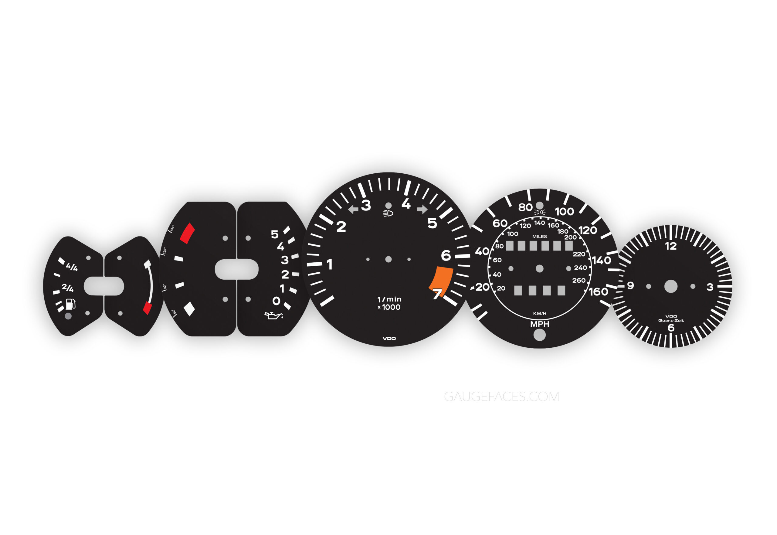Porsche 1978-83 SC (Super Carrera) gauge faces – MPH/KMH – Black.