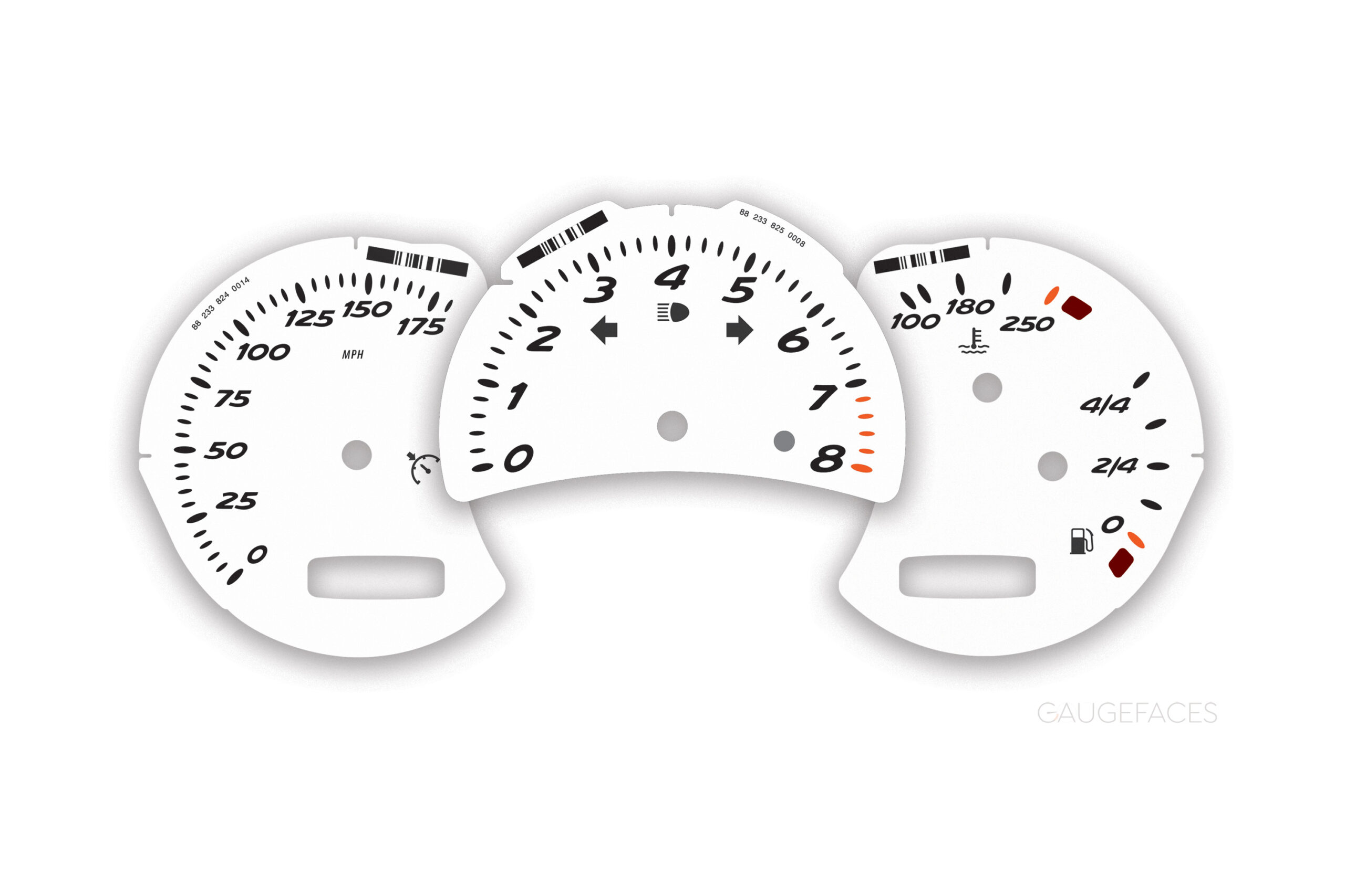 Porsche 986 Boxster S 3.2 L Facelit – Tiptronic/Manual – 175 mph / 280 km/h – 8000 RPM – Instrument cluster gauge face – White.