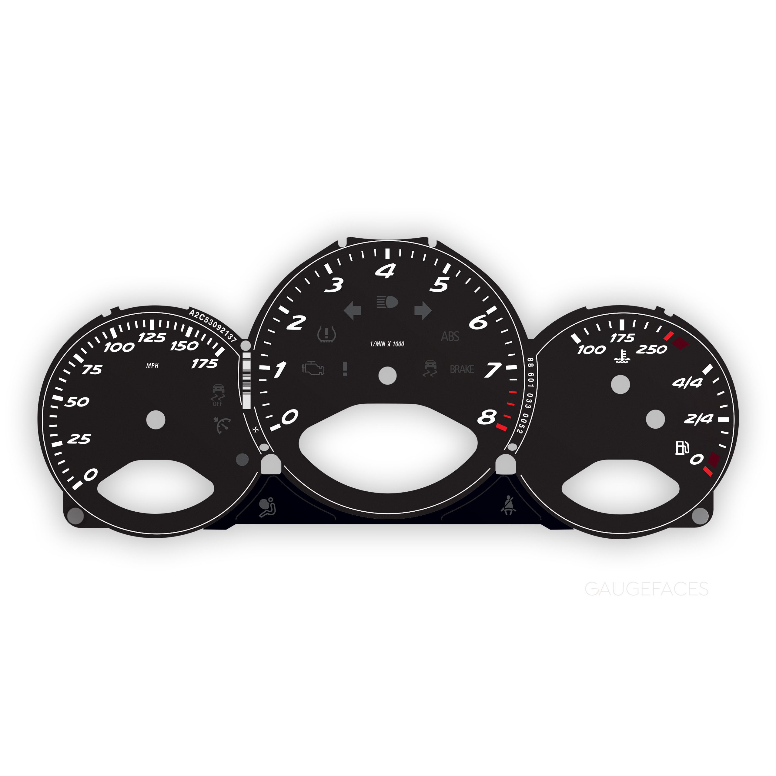 Porsche 987.2 Boxster / Cayman 2.9 L – PDK/Manual – 175 mph / 280 km/h – 8000 RPM – instrument cluster gauge face – Black.